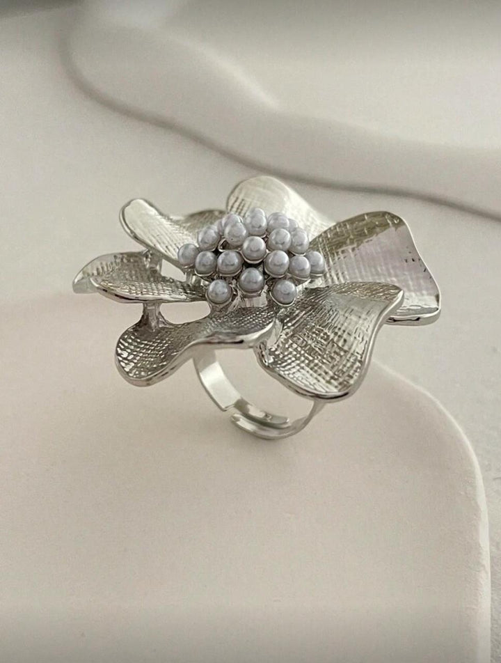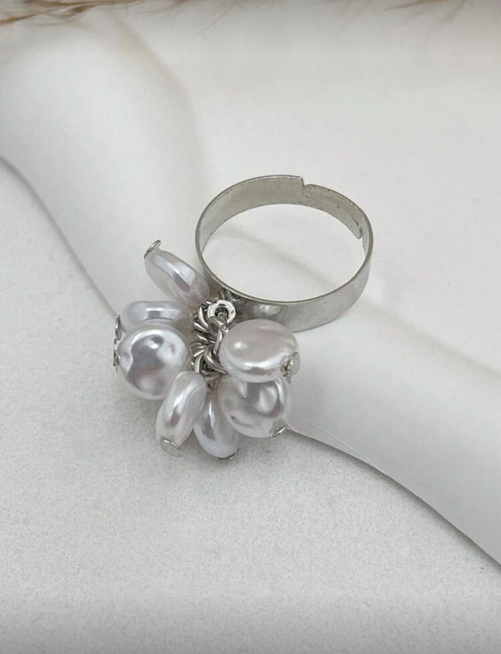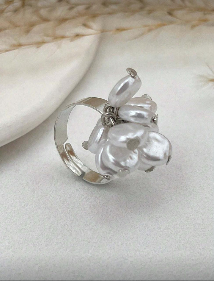 A graceful duo of silver rings inspired by nature’s elegance. The set features a blooming flower design with pearl accents and a playful cluster ring adorned with lustrous pearls. Perfect for adding a feminine and timeless touch to any outfit, whether styled together or worn separately