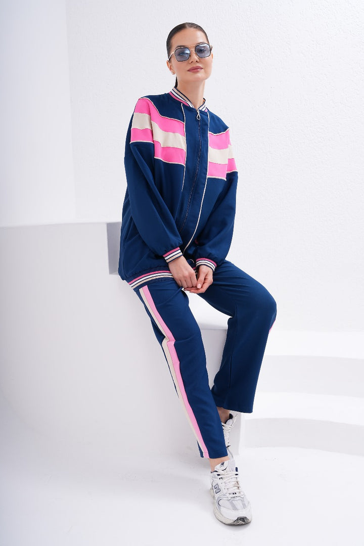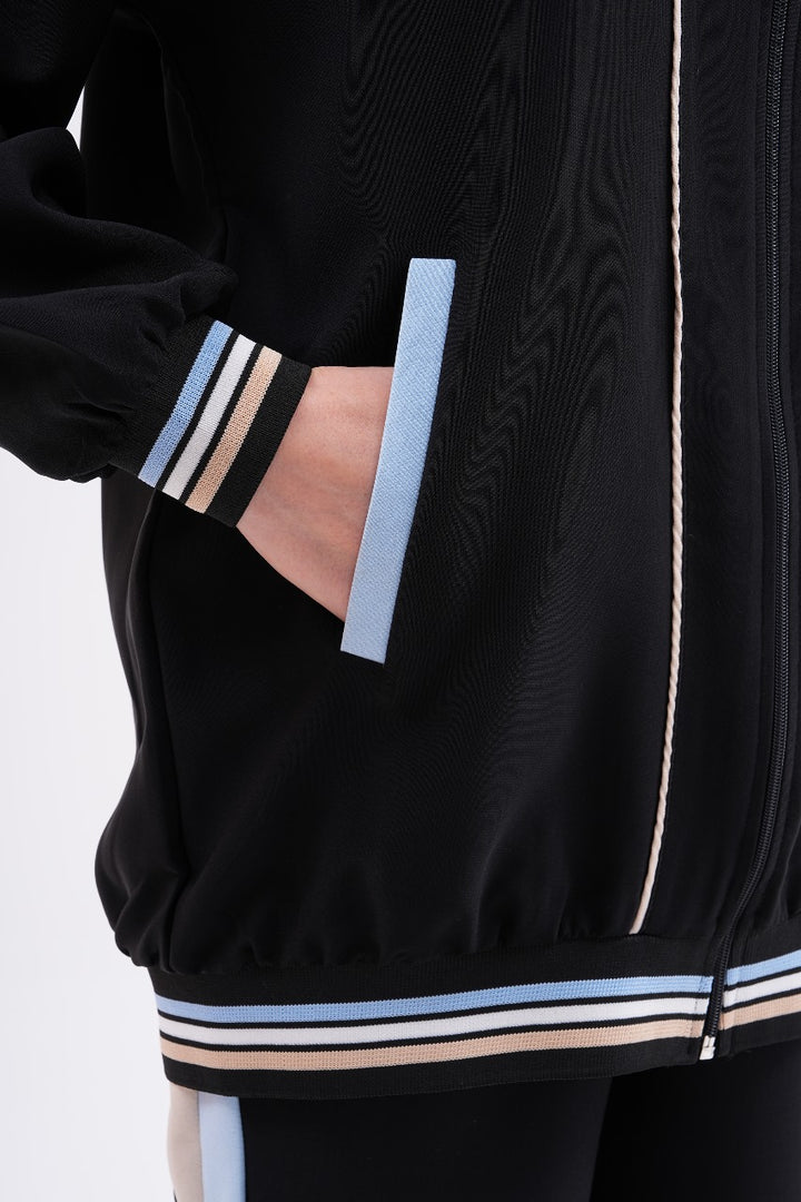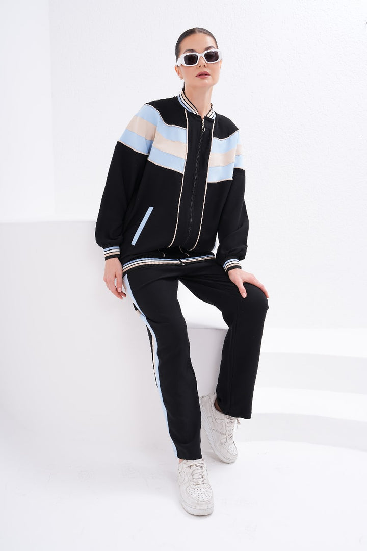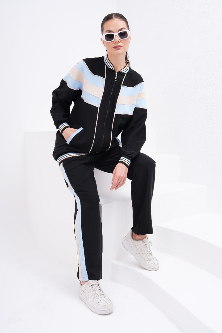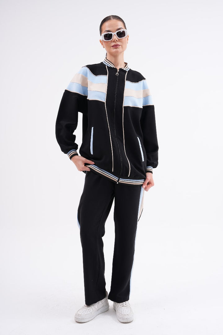 ارتقي بإطلالتك الكاجوال مع هذا الطقم الرياضي الأسود، المصمم بنمط ألوان متناسقة وعصرية. مصنوع من قماش مريح وخفيف مثالي للأيام النشيطة أو الإطلالات اليومية المريحة. مظهر عصري مع أقصى درجات الراحة!