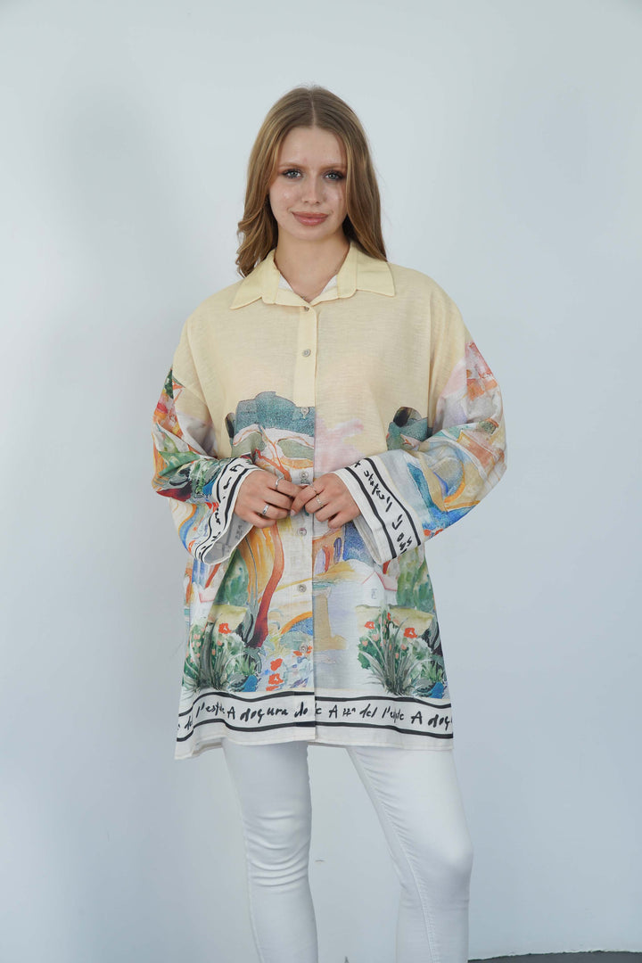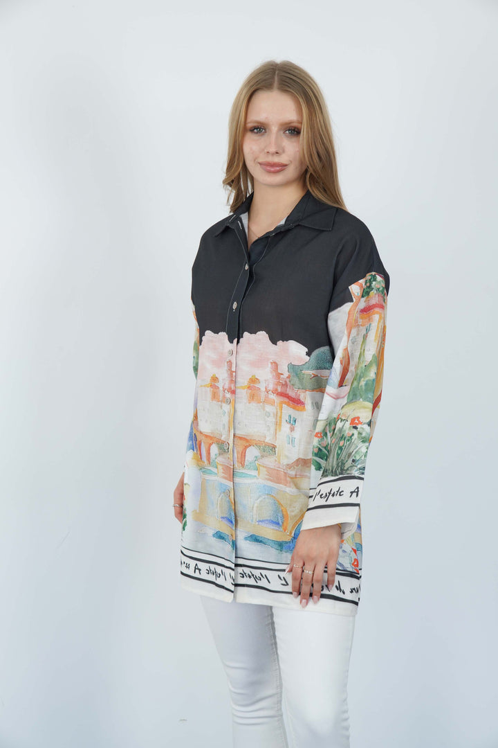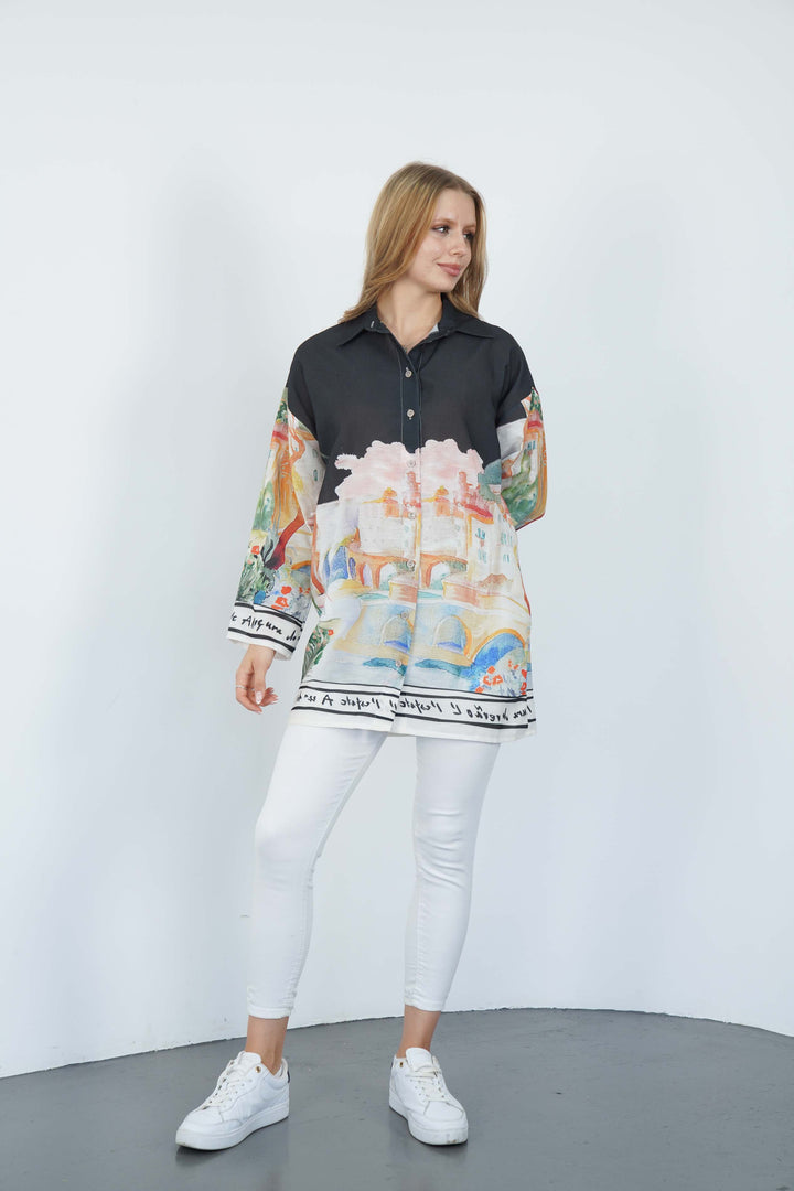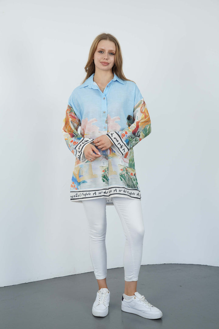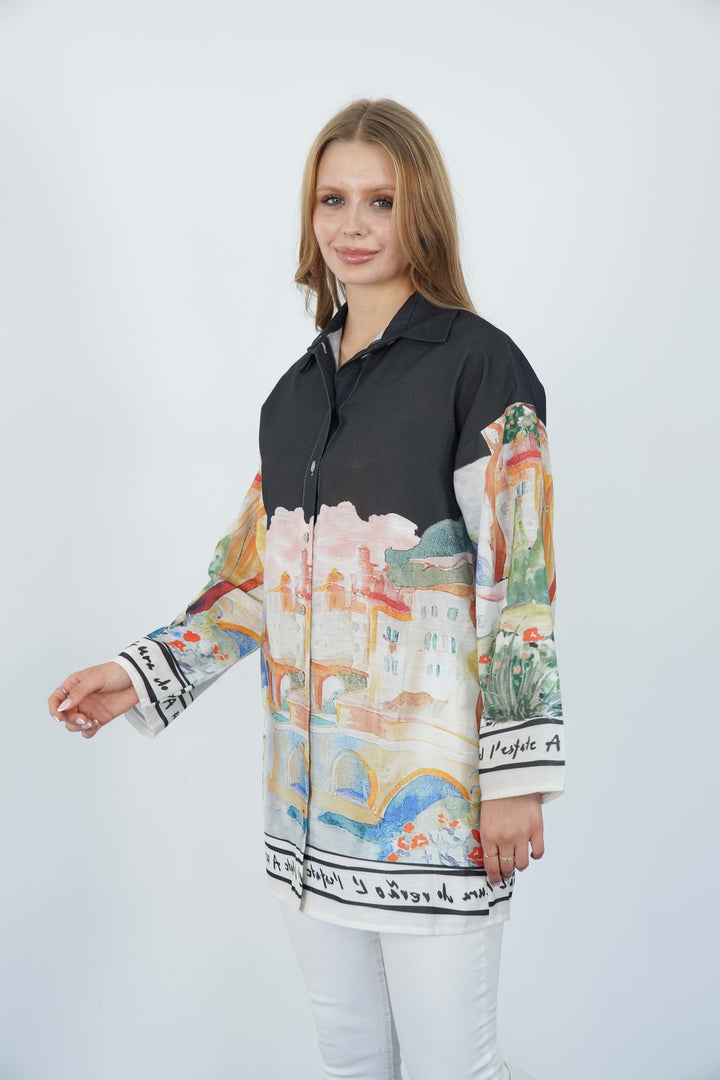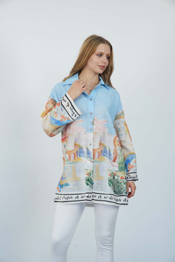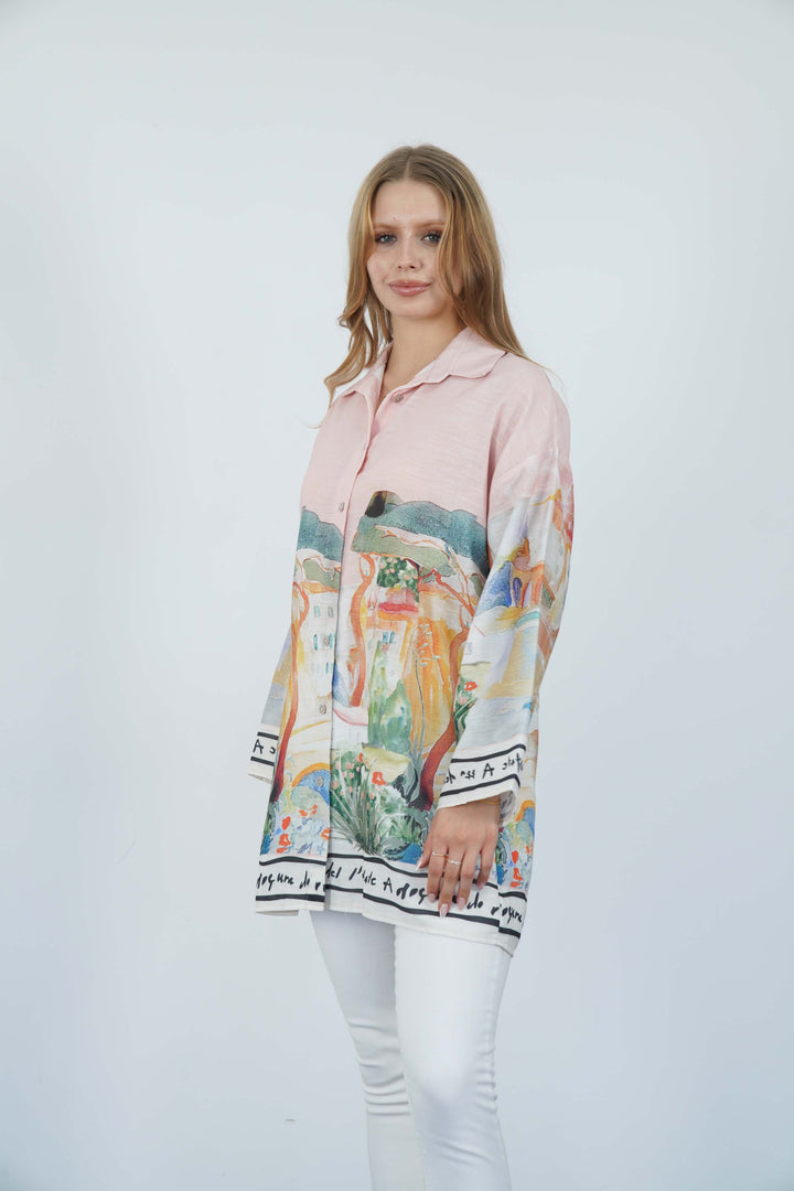 A stylish and unique shirt featuring elegant artistic prints across the front for a sophisticated and creative look. Designed with a classic collar and button-down front, it’s perfect for casual or semi-formal outfits. Available in three beautiful colors to suit your style.