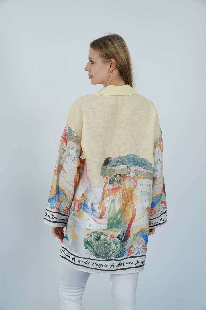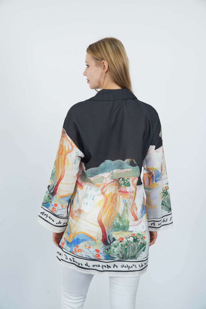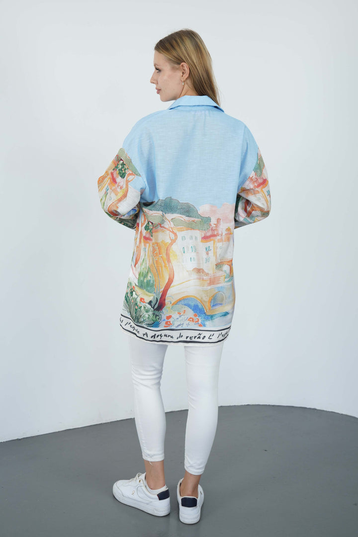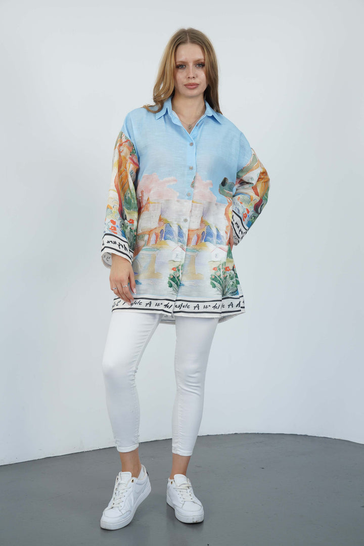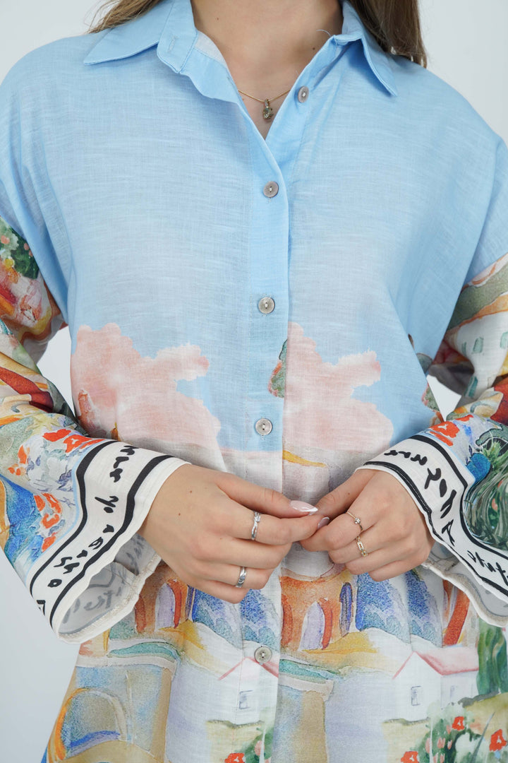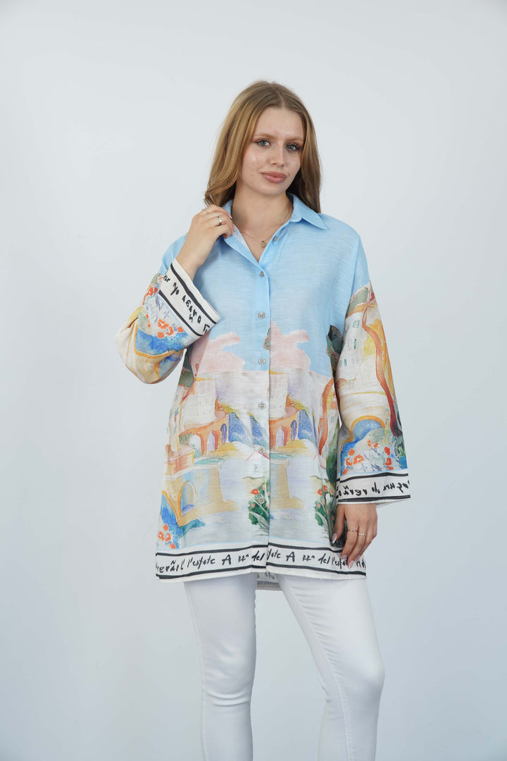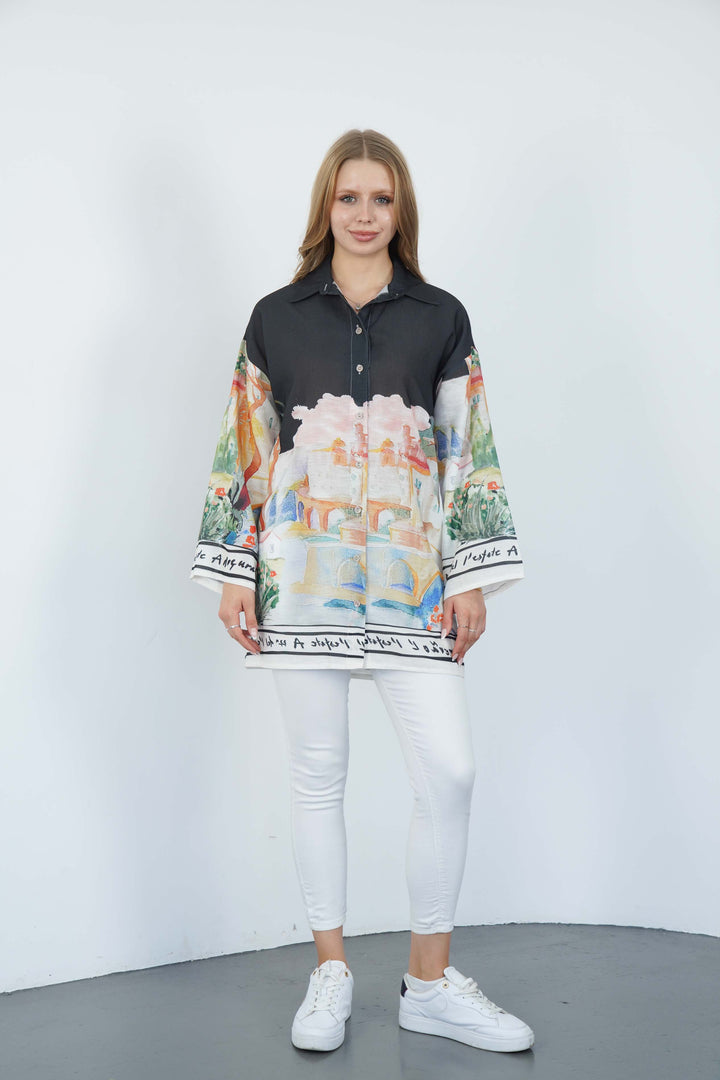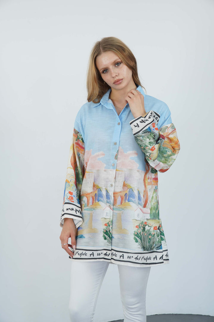 A stylish and unique shirt featuring elegant artistic prints across the front for a sophisticated and creative look. Designed with a classic collar and button-down front, it’s perfect for casual or semi-formal outfits. Available in three beautiful colors to suit your style.