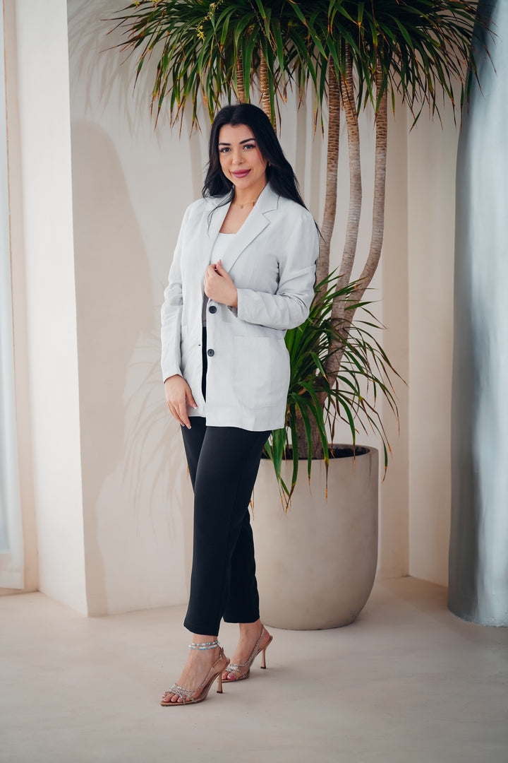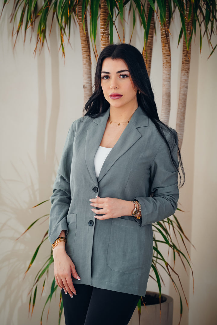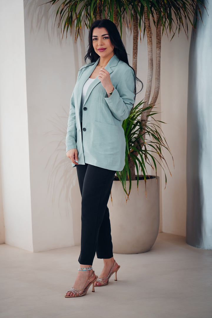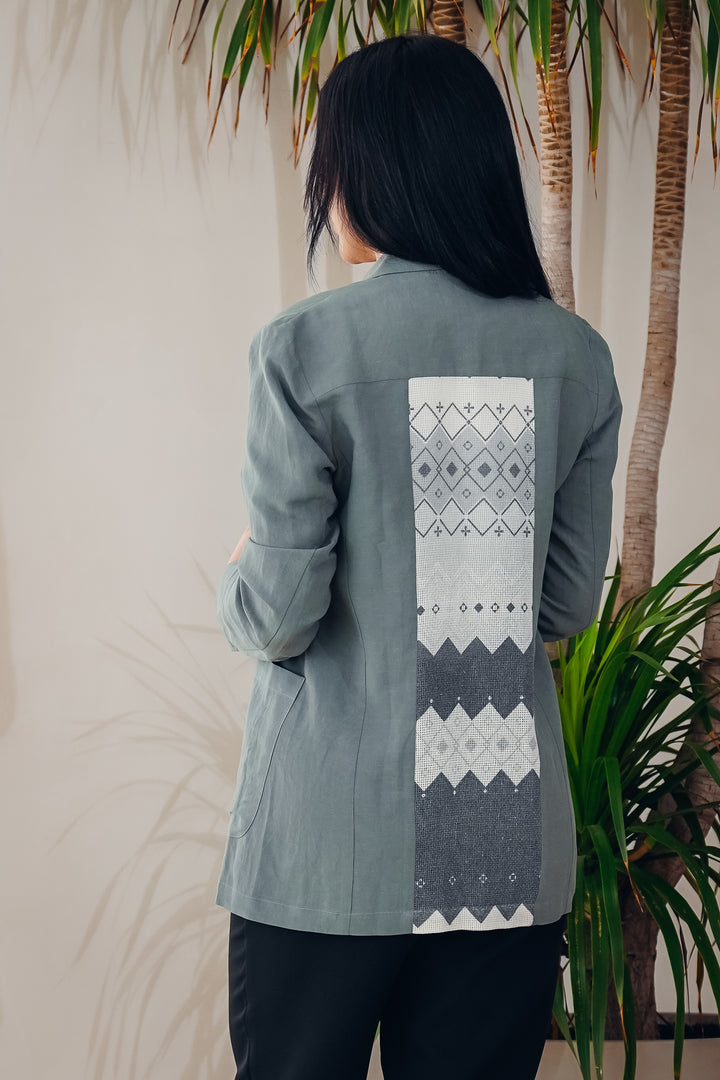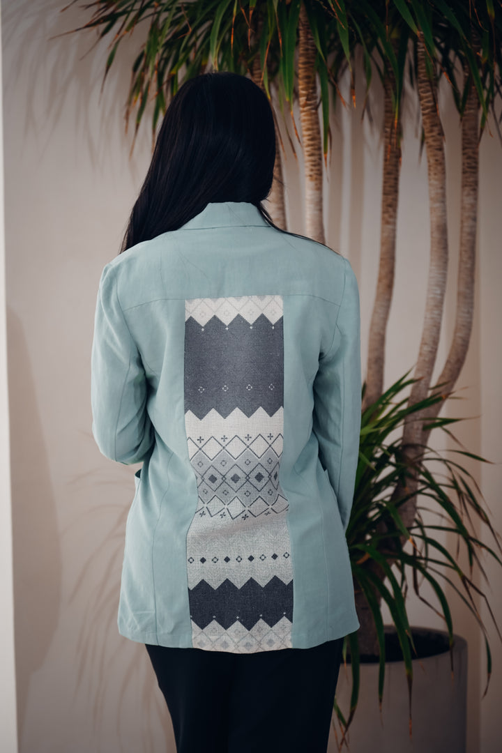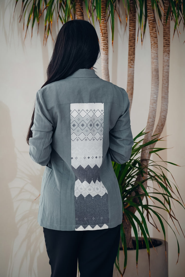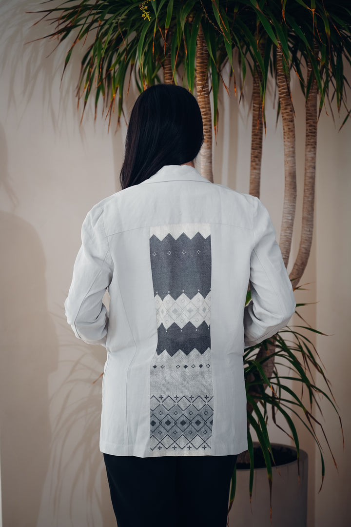 A stylish and modern jacket crafted from lightweight, comfortable fabric. Features a unique geometric printed design on the back, adding a distinctive touch to your everyday look. Available in three different colors to suit all tastes, perfect for casual wear or semi-formal outfits.