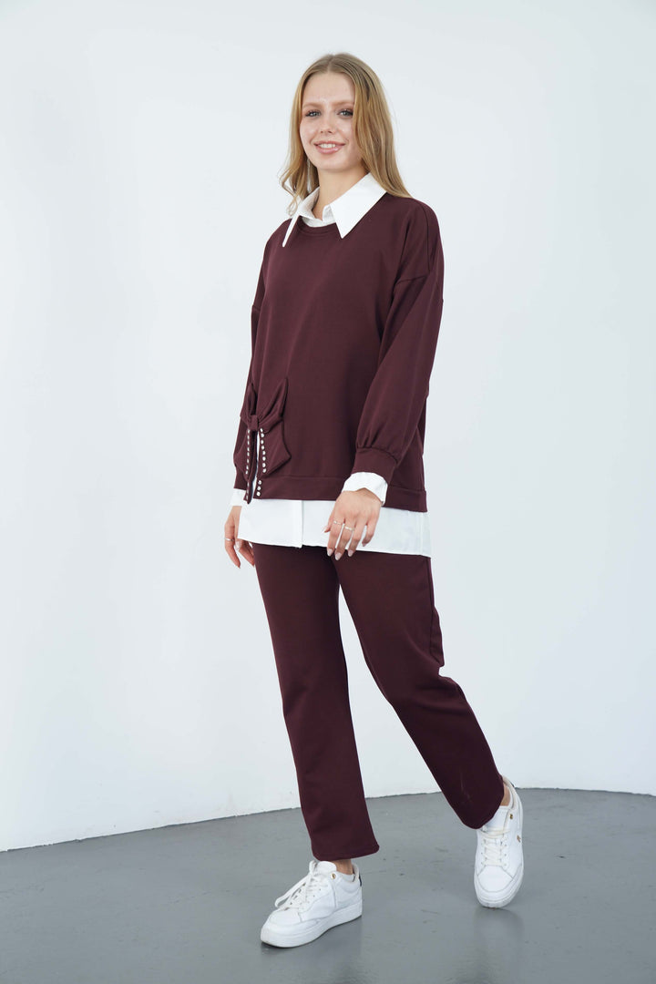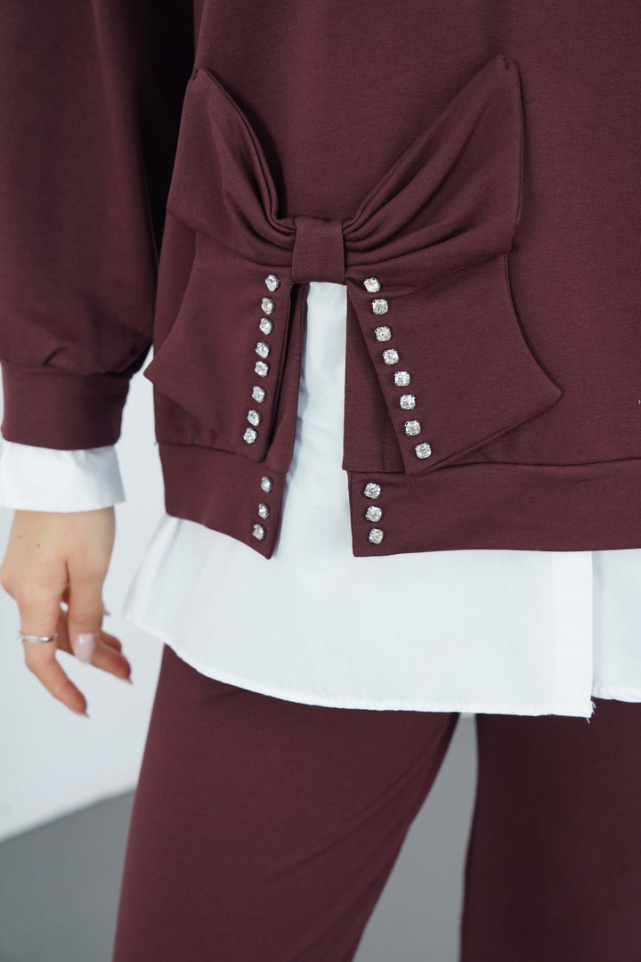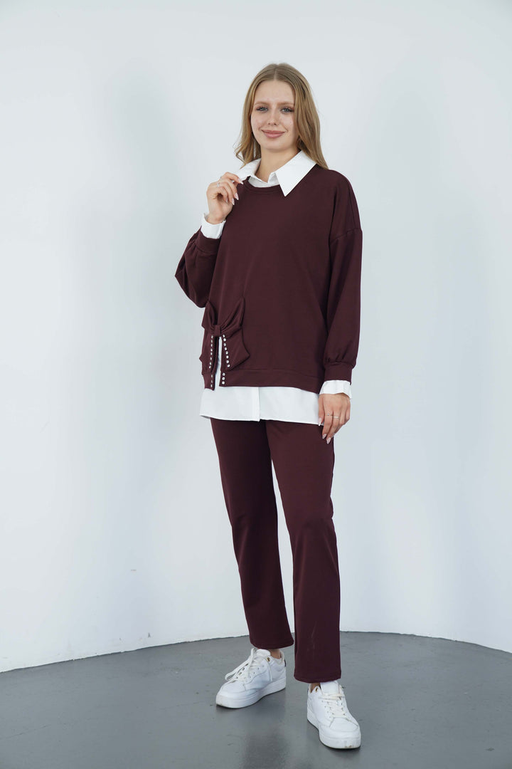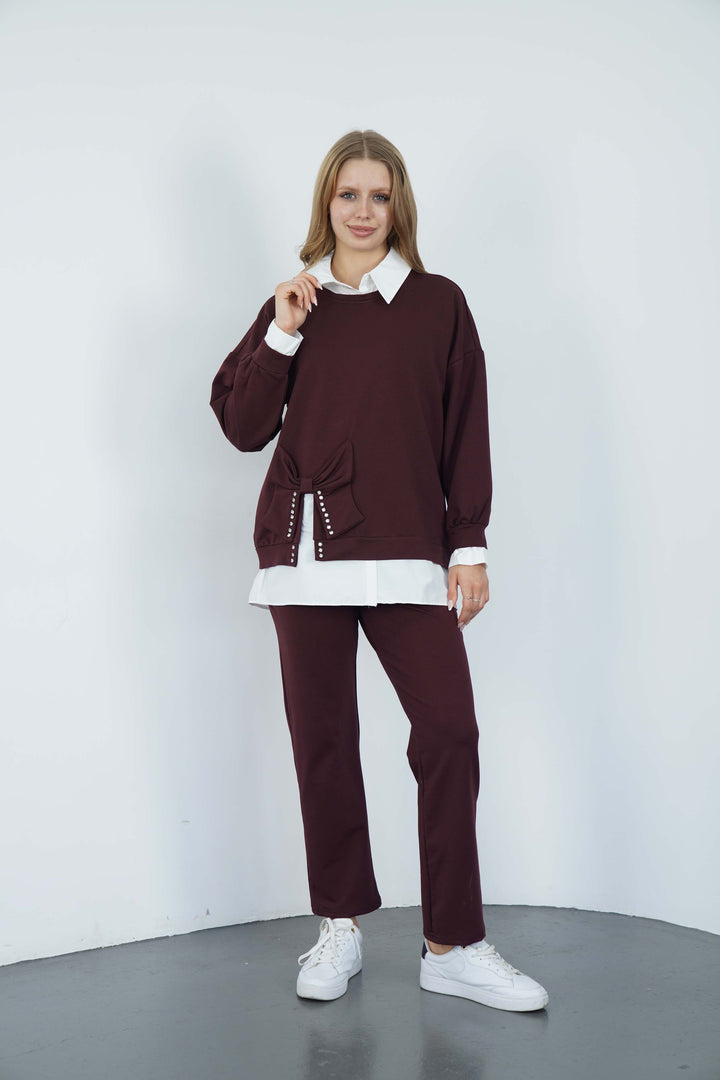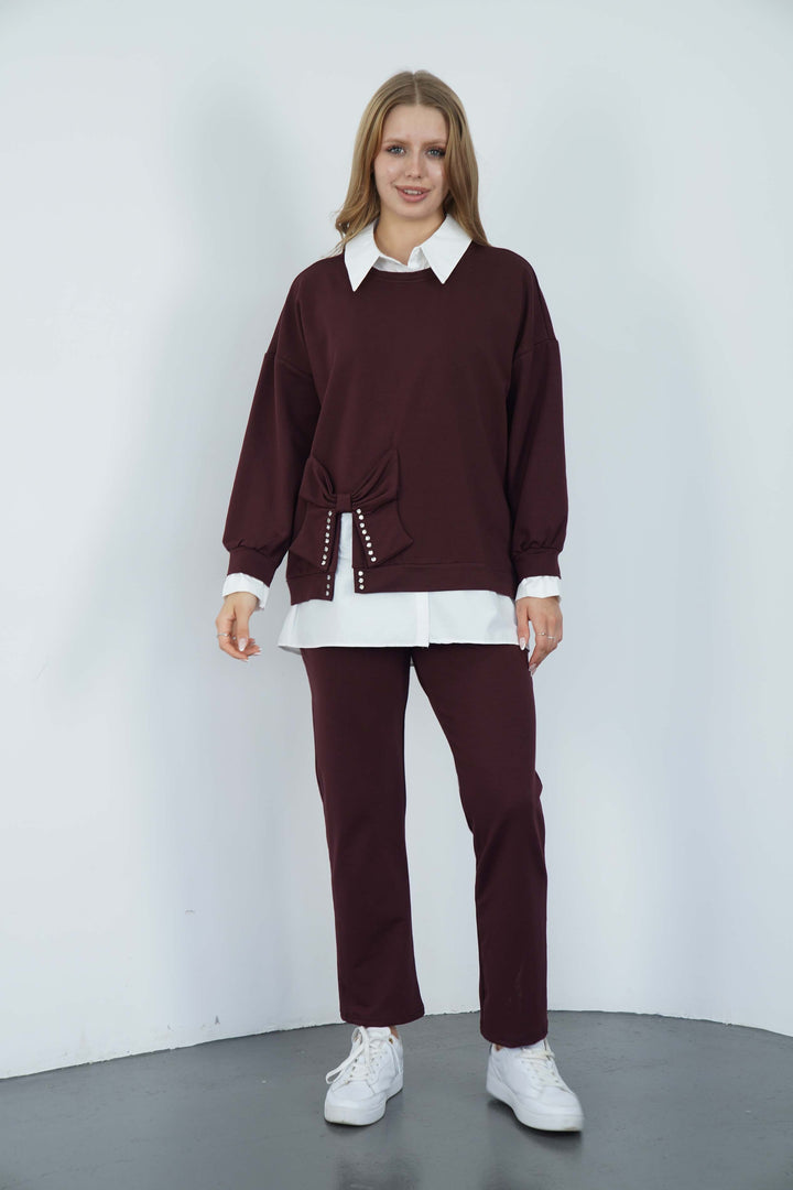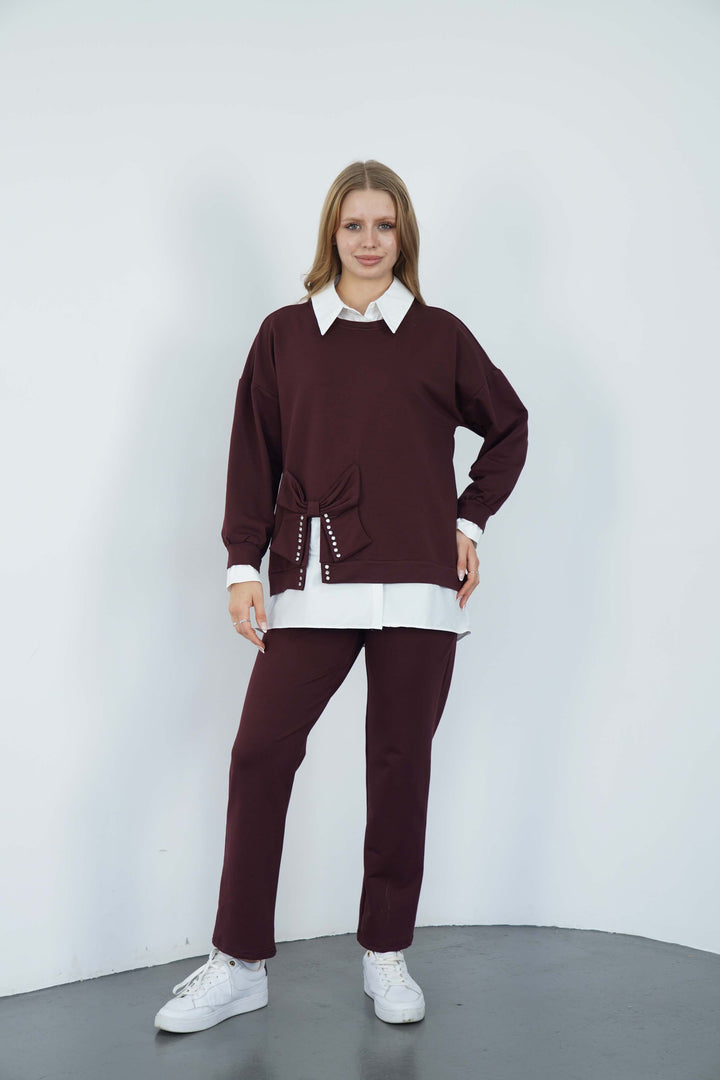 A stylish and comfortable bow training suit designed for both elegance and ease. Features a long top with a cute side bow detail and matching pants for a coordinated look. Available in three chic colors, made from soft, breathable fabric that ensures comfort and freedom of movement all day long.