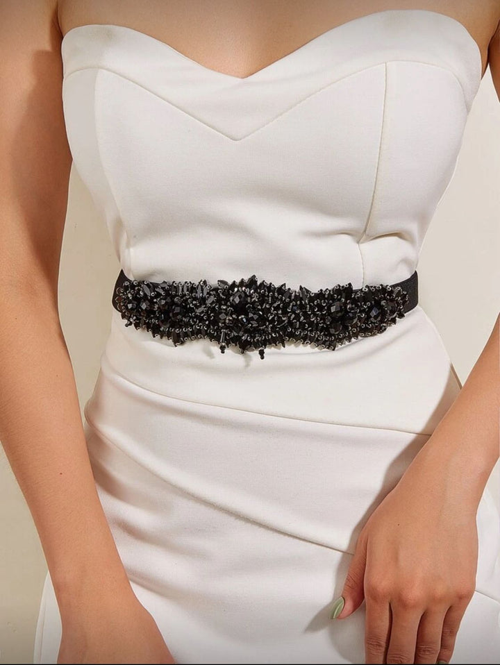 Add a touch of sophistication to your outfit with this elegant black beaded waist belt. Designed with intricate beadwork that sparkles beautifully, it’s perfect for accentuating your waist and elevating any dress or gown. Ideal for formal events, evening parties, or bridal looks, this belt combines luxury and style in one stunning accessory